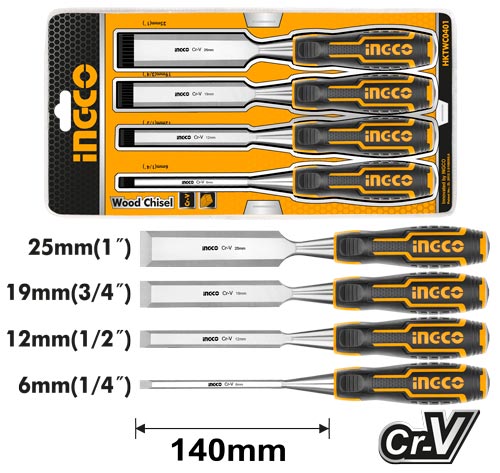 Set dleta za drvo Ingco HKTWC0401 set dleta za drvo 4 kom namenjen je preciznoj obradi drveta, rezbarenju, finoj obradi ivica, uklanjanju viška materijala i raznim stolarskim zadacima. Ovaj Ingco HKTWC0401 set dleta za drvo 4 kom pruža savršen odnos veličina zahvaljujući setu širina od 6 mm, 12 mm, 19 mm i 25 mm, što omogućava rad od najfinijih do srednje širokih zahvata.