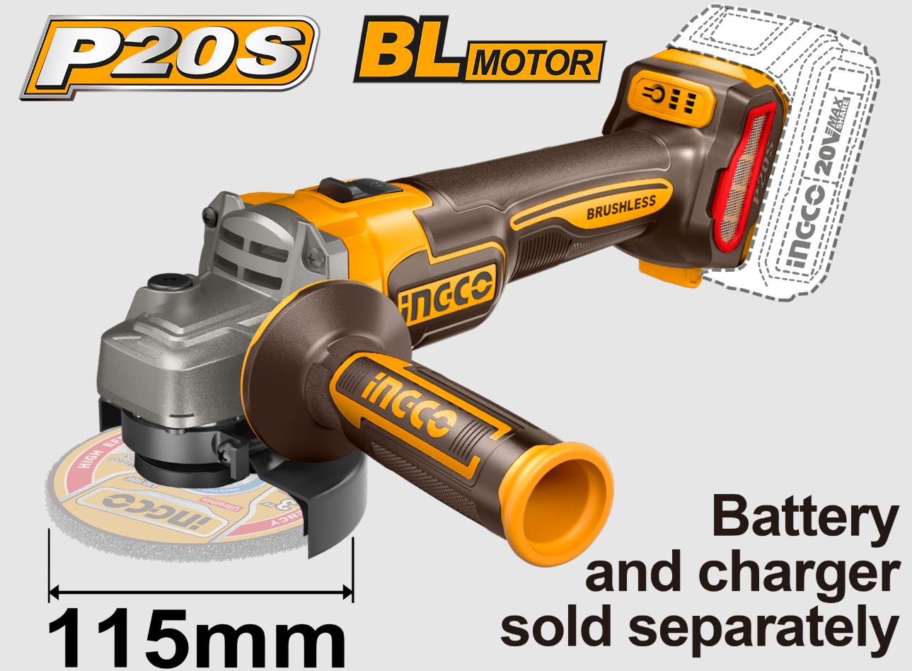 Prečnik diska od 115 mm čini je kompaktnom i praktičnom, a standardni M14 navoj omogućava kompatibilnost sa većinom reznih i brusnih diskova. Rad na naponu od 20V daje dovoljno snage za intenzivnu upotrebu, posebno u kombinaciji sa kvalitetnim baterijama iz Ingco serije. Isporuka dolazi bez baterije i punjača, što je praktično za korisnike koji već poseduju 20V platformu.