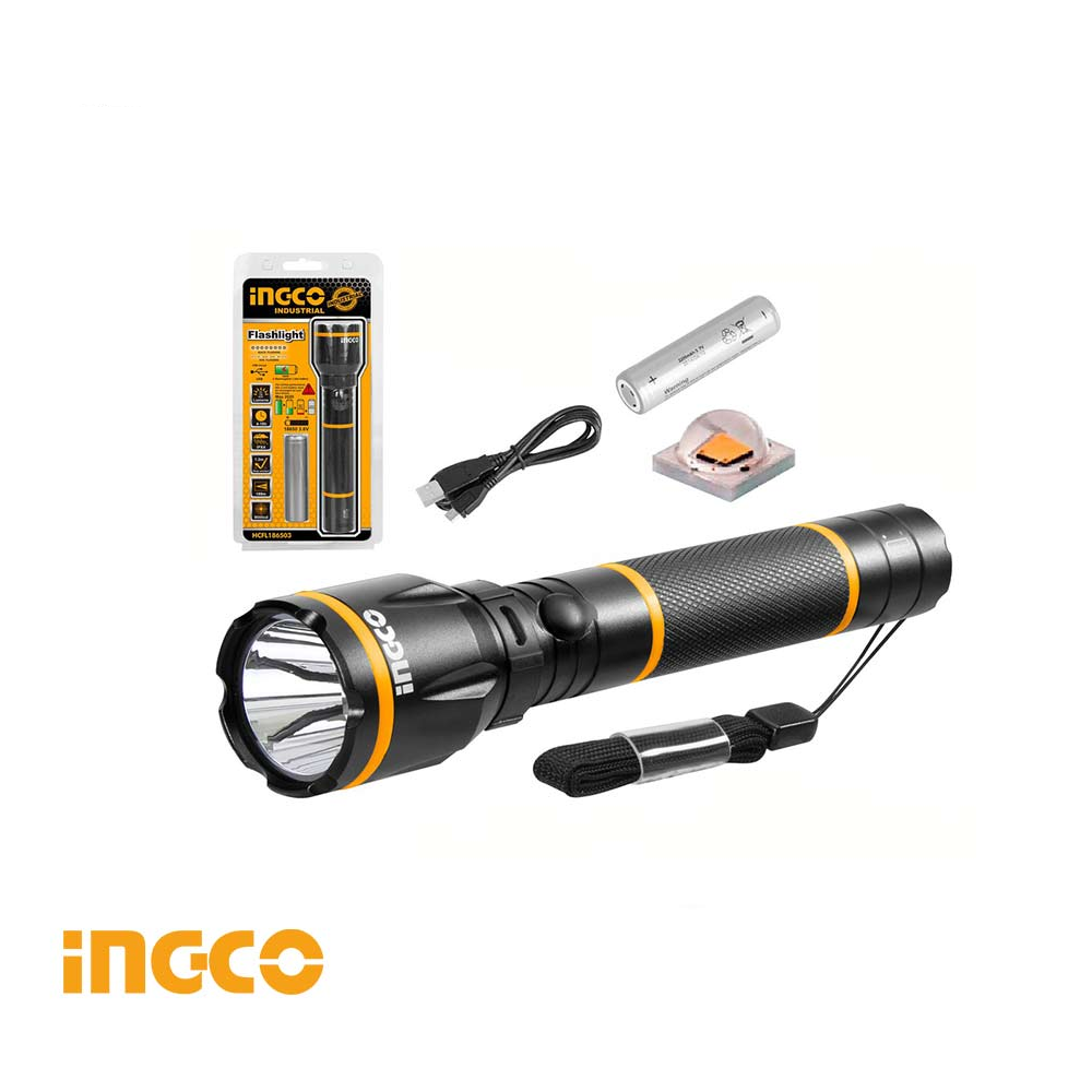 Industrijska baterijska lampa INGCO HCFL186503 izrađena je od vrhunske 6N01-T6 aluminijumske legure klase vazduhoplova, što joj daje izuzetnu izdržljivost i malu težinu.