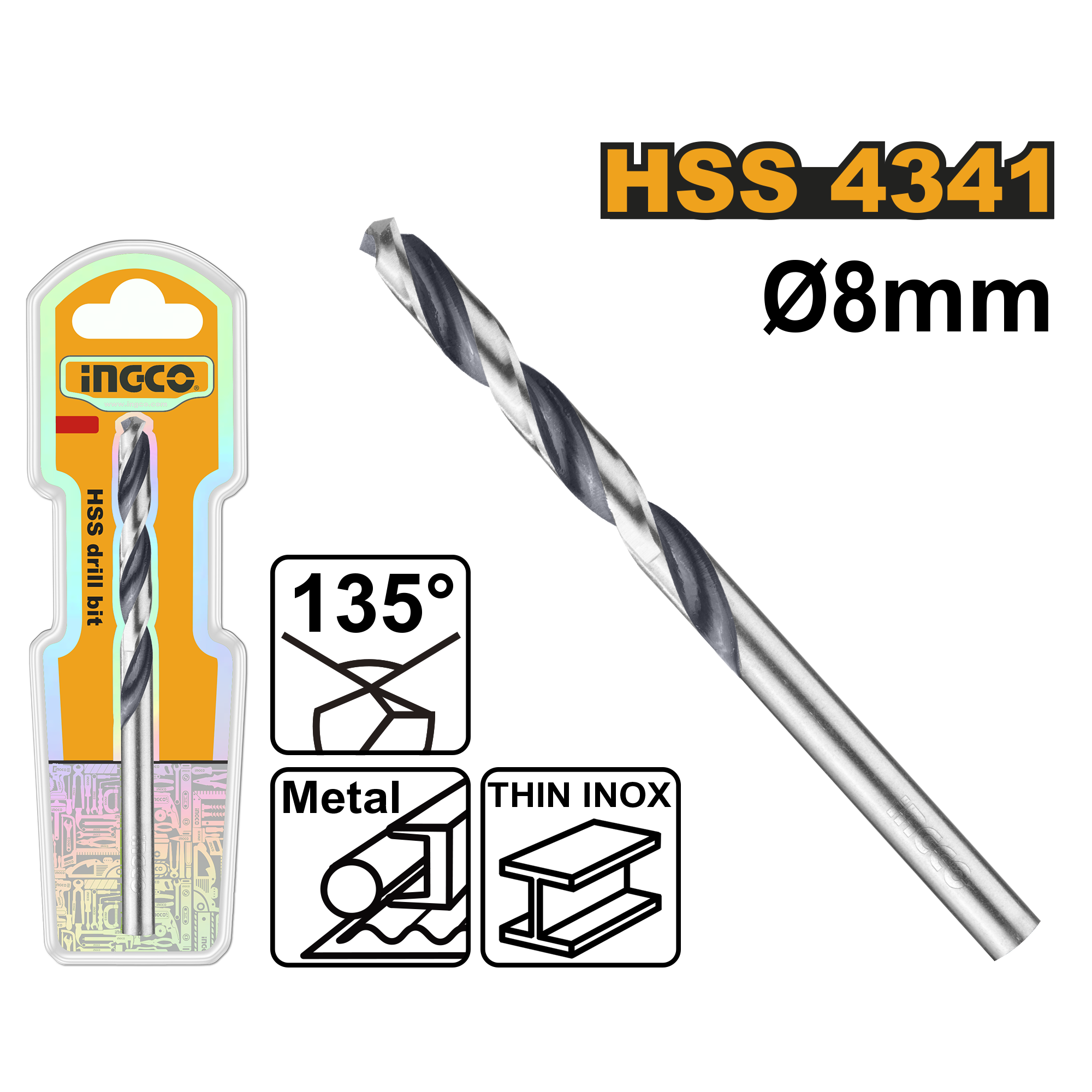 Burgija INGCO DBT1200804 je specijalizovana za bušenje metalnih materijala. Izrađena od visokokvalitetnog HSS 4341 čelika, ova burgija je projektovana da izdrži habanje i toplotu koje nastaju prilikom intenzivnog rada. Prečnik burgije iznosi 8 mm, što je standardna veličina za razne montažne i servisne poslove.