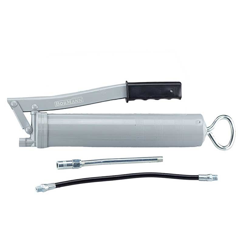 Ručna mazalica BORMANN BHT1530 omogućava podmazivanje mehaničkih delova pod visokim pritiskom. Set sadrži čelični nastavak dužine 15 cm i fleksibilno metalno crevo dužine 30 cm. Zapremina joj je 0,5 l. Poseduje 4 priključka (spojke).