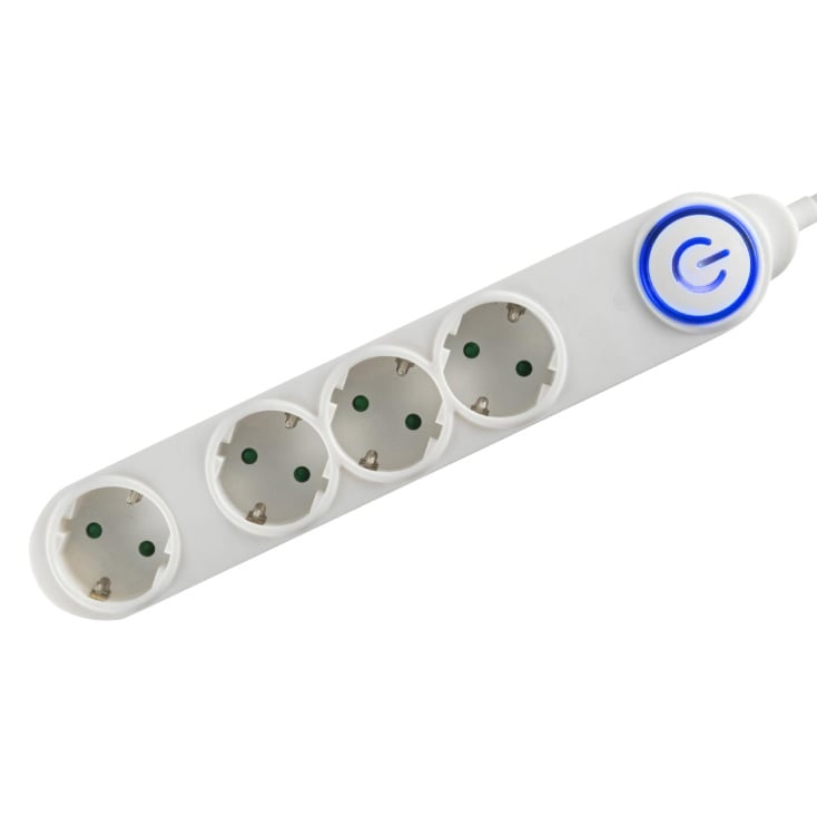 Razvodnik sa 4 uzemljene utičnice i osvetljenim prekidačem