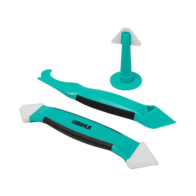 Profesionalni komplet za popravku silikona i zaptivača, BIHUI STARK3 sadrži: završni profili sa 3R(1/8R) i 6R(1/4R), mlaznice za injektiranje uloška i noževe za uklanjanje silikona i zaptivača. Brz i lak za upotrebu i čišćenje, dizajniran za savršeno urednu završnu obradu. Idealan za kade, tuševe, umivaonike, balkone itd.