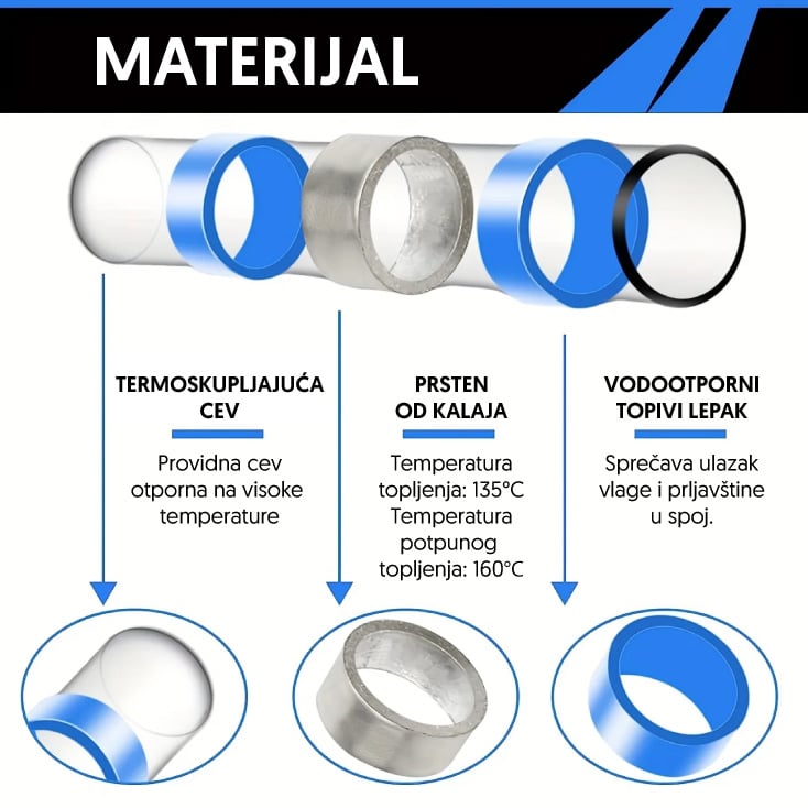 Sastoji se od termoskupljajućeg materijala, kalaja i lepka koji, kada se zagreju, stvaraju trajnu i izolovanu konekciju