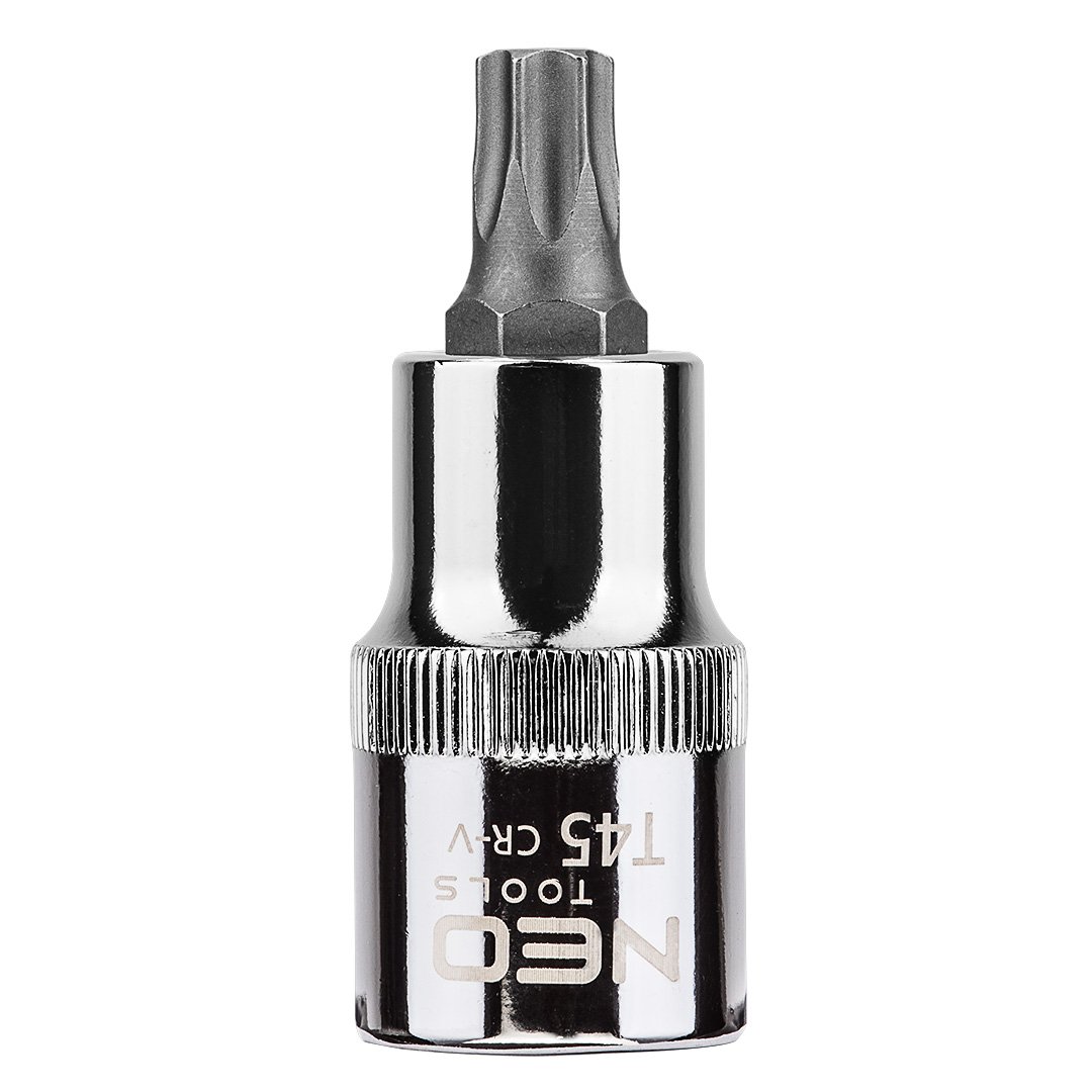 NEO TOOLS Torx bit na 1/2″ nasadnoj kapi (utičnici) dužine 55 mm. Utičnica je izrađena od izdržljivog hrom-vanadijum čelika. Šestougaoni bit (telo) izrađeno je od visokokvalitetnog legiranog čelika S2. Visok kvalitet alata potvrđen 25-godišnjom garancijom proizvođača. NEO marka ispunjava očekivanja profesionalaca.