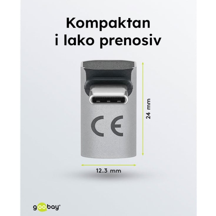 Ugaoni USB-C adapter omogućava povezivanje USB-C kabla pod pravim uglom, čime se smanjuje opterećenje konektora i olakšava korišćenje u skučenim prostorima. Podržava USB 4.0 standard i kompatibilan je sa Thunderbolt 3 i 4 uređajima.