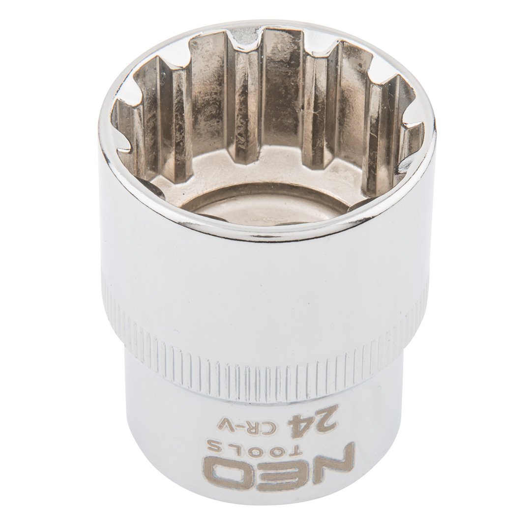 NEO TOOLS univerzalna nasadna glava od 1/2″ napravljena je od izdržljivog hrom-vanadijum čelika  u skladu sa DIN 3124. Sferični oblik čaure omogućava svestranu upotrebu za odvrtanje vijaka: Torx, sferne (12 tačaka), šestougaone, dvanestougaone, zvezdaste i kvadratne, kako metričke tako i inčne. Kvalitet alata potvrđen TUV sertifikatom i 25-godišnjom garancijom proizvođača. Brend NEO ispunjava očekivanja profesionalaca.